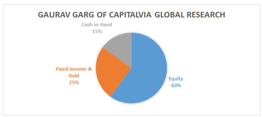 “Let us assume an investor who is at age of 40, the ideal asset allocation would be 60 percent to equity, 20-25 percent to fixed income/gold and 20-15 percent in cash,” he said.