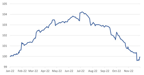 • Market is pricing the dream that interest rates will peak at a reasonable level and fall back quickly in the second half of 2023.