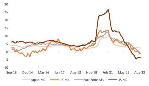 China’s property slump is gaining salience again as Country Garden, a property giant, warned it could default on its debt. The combined outstanding debt of Evergrande (already defaulted) and Country Garden, is over USD 500 billion. The wealth effect is deeply impacted because property accounts for over 65% of household wealth in China. Hence, despite policy support, economic recovery could remain fragile. These woes already reflect in the performance of Chinese equities. The MSCI China index is the worst performing so far, and the index is down 20% from its 2022 peak. It is worth noting that China valuations are fairly cheap at roughly 10x and a contrarian call could play out favourably.