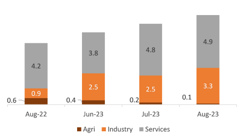 Contributions of sectors towards growth (pp)