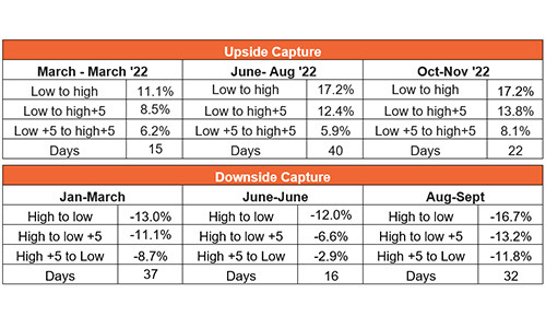 Table 1: Returns from trading the top to bottom ranges for the S&P500 in 2022