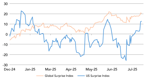 Global economic data had been outpacing the US, but strong retail numbers and a bounce in manufacturing helped narrow that gap and propelled the Citigroup US Economic Surprise Index (CESI) into positive territory again. The tone has brightened—just in time for the next policy twist.