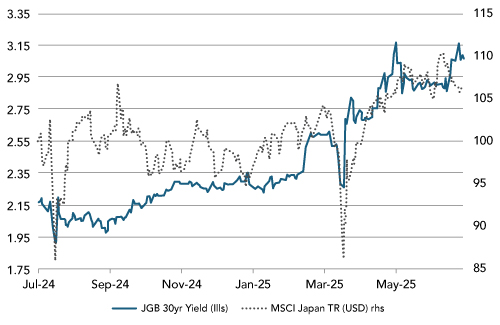 The outlook for equities is muddled, however we still believe that corporate restructuring is too well established to see any serious downside risk. A relatively cheap valuation and ongoing commitments to enhancing shareholder value should protect the market from marked downside risk. The recent weaker currency should aid exporters, but the Nikkei reaction will likely to remain tentative. The country’s auto sector faces a double threat—from domestic uncertainty and looming Trump tariffs, possibly hitting as early as 1 August. Trade talks have slowed, and a weakened government may lack capacity to respond.